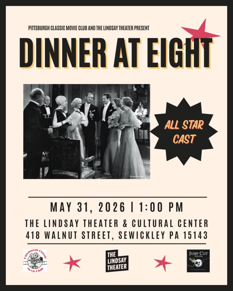The Pittsburgh Classic Movie Club’s mission is to preserve and promote classic film from the Golden Age of Hollywood—defined as films released between 1910 and 1969—in this region. PCMC holds screenings throughout the Pittsburgh area, and often partners with The Lindsay on exclusive classic film events.